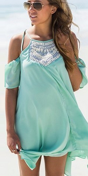 from sheer chiffon,gives you a comfortable wearing style. A must-have item for seaside trip.