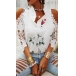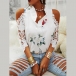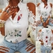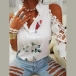 Sexy Off-shoulder Lace Spliced Short Sleeve Ruffle V-neck Printed Top