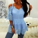 Wanna try a different style top? Then you can just make your eyes focused on this piece. Solid color style,the off-shoulder and lace spliced details will make this piece look more attractive and stylish. When you try this piece,you can easily update your style and boost your entire charm.