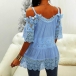 Sexy Off-shoulder Lace Spliced Short Sleeve Solid Color Sling Top