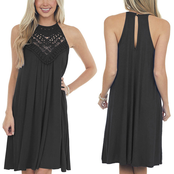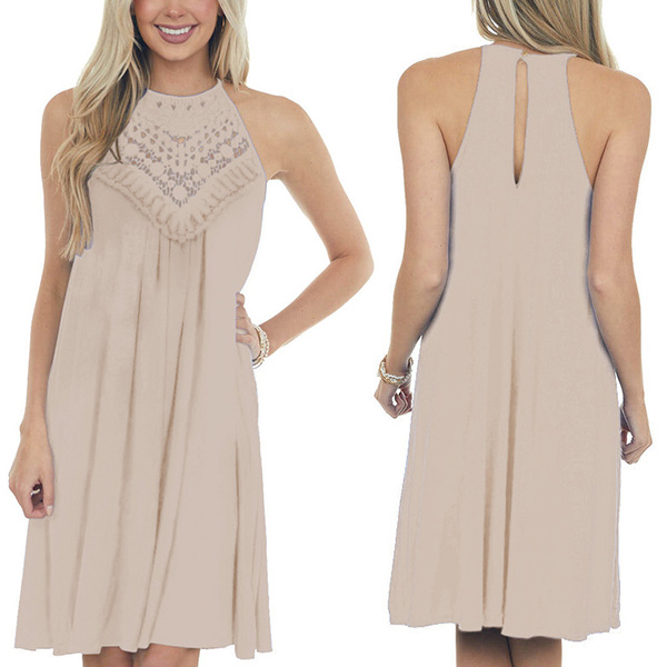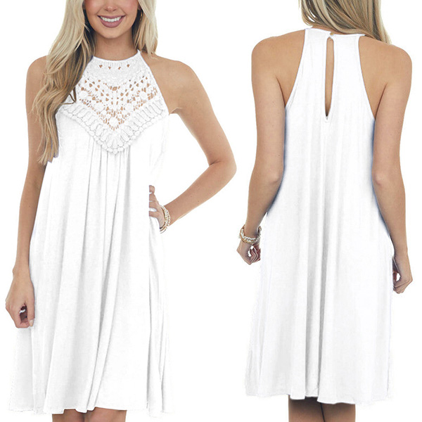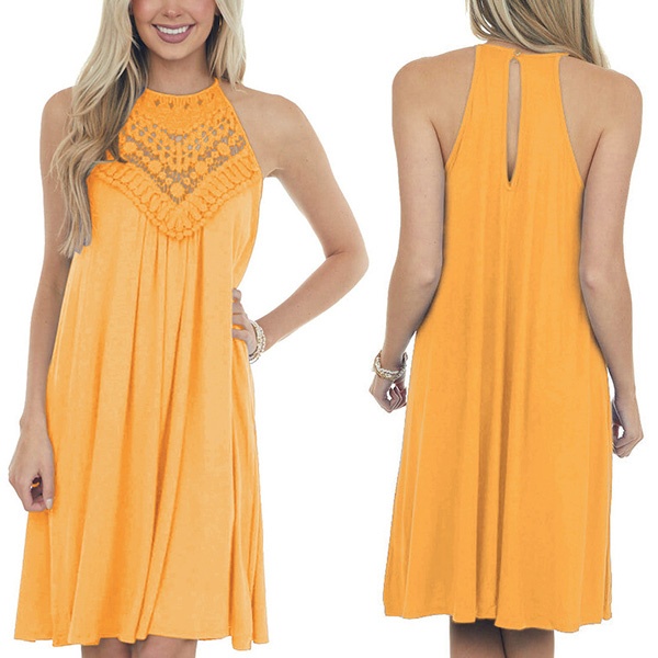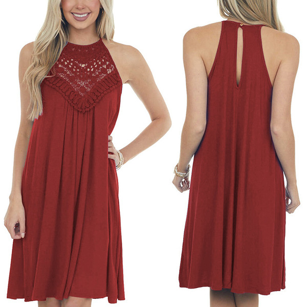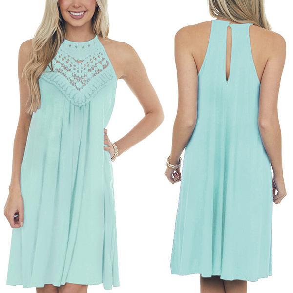 This dress that combines of sassy and flirty vibes is just the thing you need on these sun-soaked summer days. Sling style,with off-shoulder and lace spliced details,which can make you look sexier. Meanwhile,its soft and breathable fabric can give you a cool and comfortable day. So why not enrich your summer wardrobe with this little item?