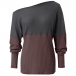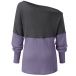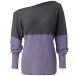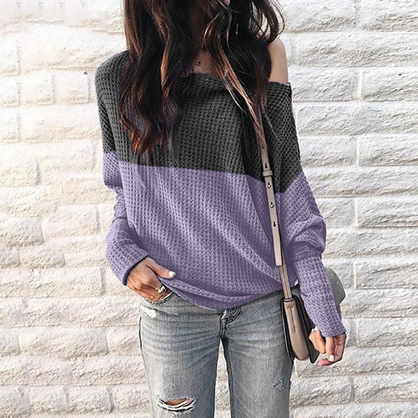 Sexy Off-shoulder Lantern Sleeve Contrast Color T-shirt