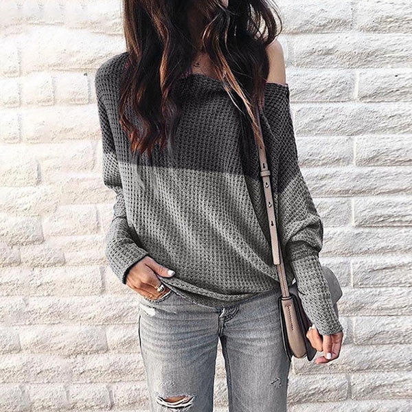 You can still showcase your charming neck and shoulder in the early fall by wear this long sleeve top.It has different colors, with off-shoulder and lantern sleeve design,which can lend you a sexier look. The soft fabric can provide you with a comfortable day.