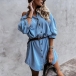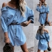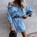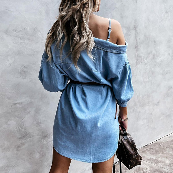 Sexy Off-shoulder Lantern Sleeve Single-breasted Sling Denim Dress