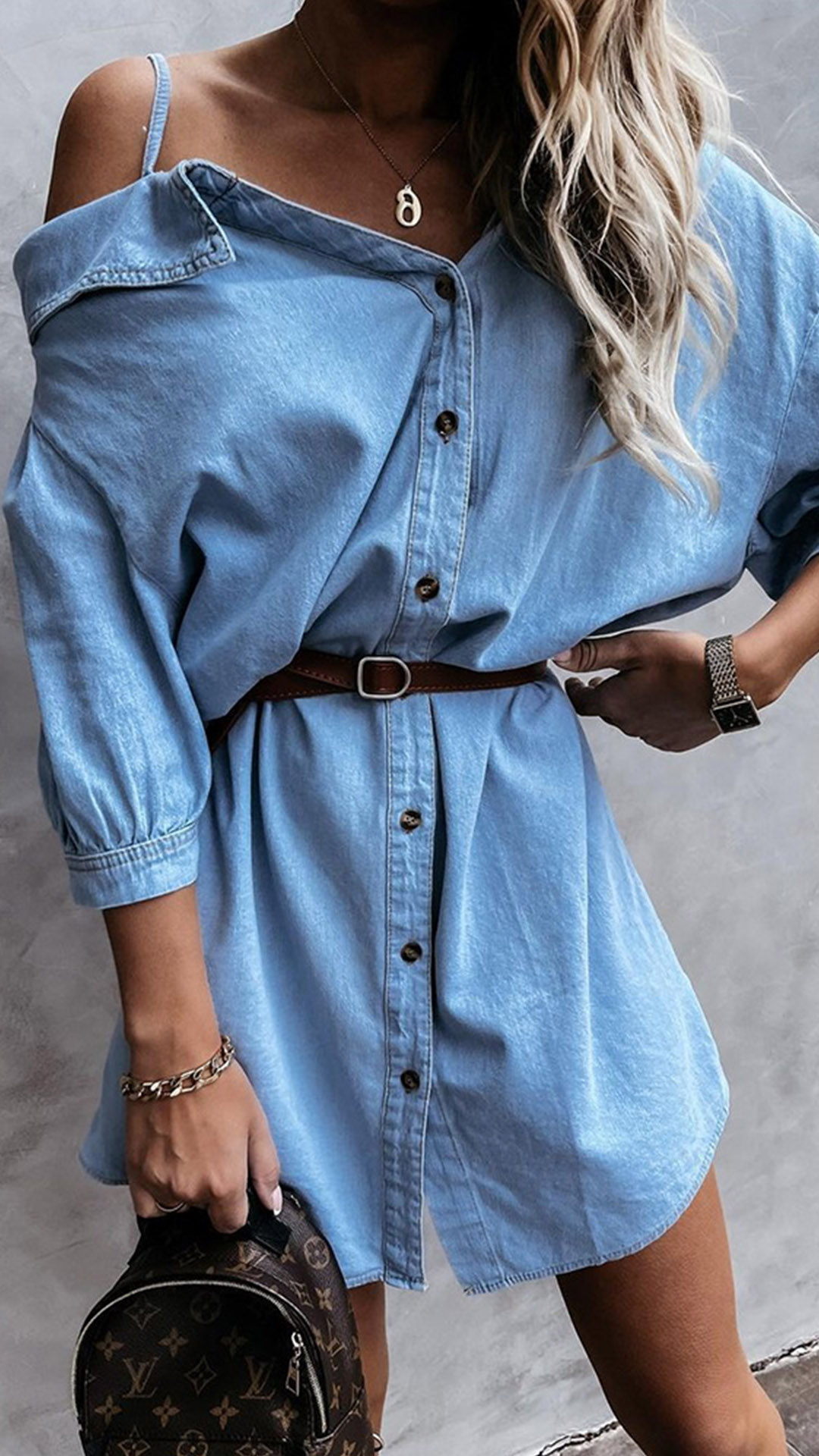 Catch the envious eye of everyone in the room with this denim dress. The design details like off-shoulder,lantern sleeve and single-breasted design make this piece full of chic,flirty and stylish vibes. You can trust in this piece to update your daily style and boost your entire charm.