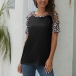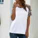 Sexy Off-shoulder Leopard Spliced Short Sleeve Round Neck T-shirt