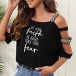 Sexy Off-shoulder Letters Printed Colorful Sling T-shirt