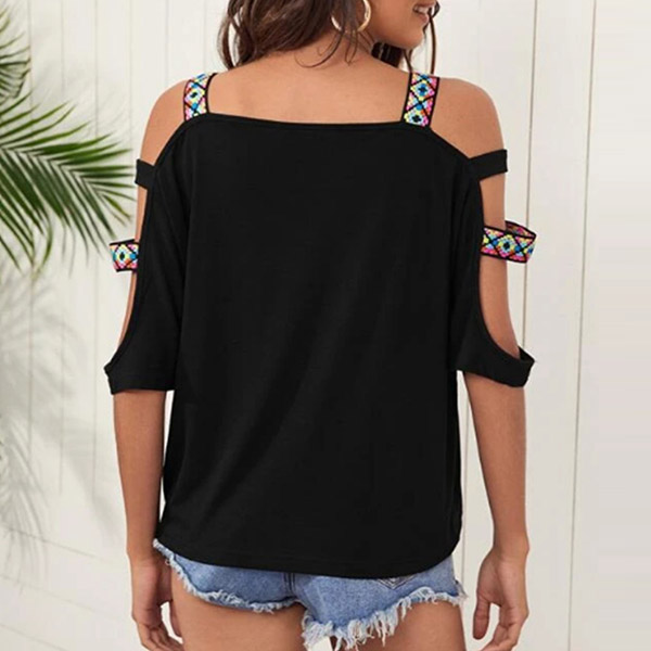 Compared with your other t-shirts,this piece not only can keep the comfy,but also can bring you more style. The off-shoulder and colorful sling design are the highlights,which make this piece full of sexy and flirty vibes. And the letters printed details will add some extra charm. Attracted? Then invite it to your wardrobe ensemble!