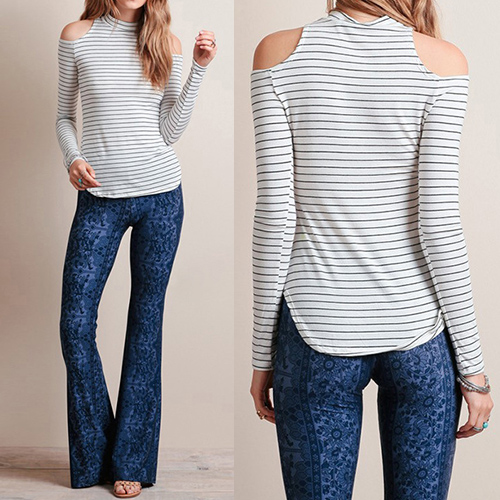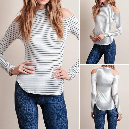 Casual,sexy,all-match and stylish elements all in one,this striped t-shirt can be your new favourite.