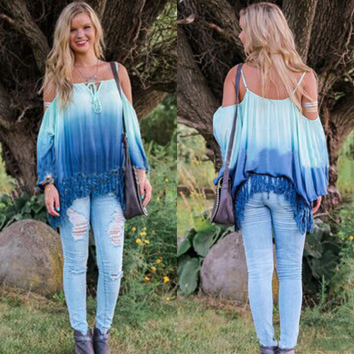How a sexy tops! Do you stop your steps and look at it. Fashion long sleeve design, off-shoulder