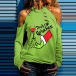 Sexy Off-shoulder Long Sleeve Cartoon Printed Ripped Top