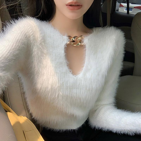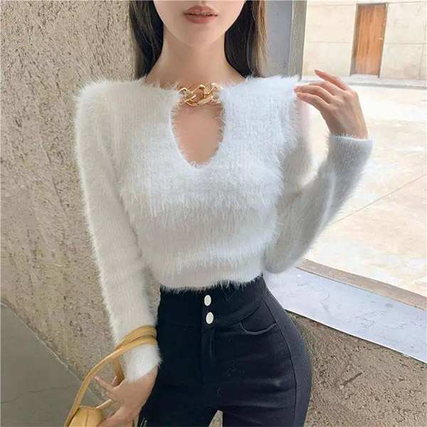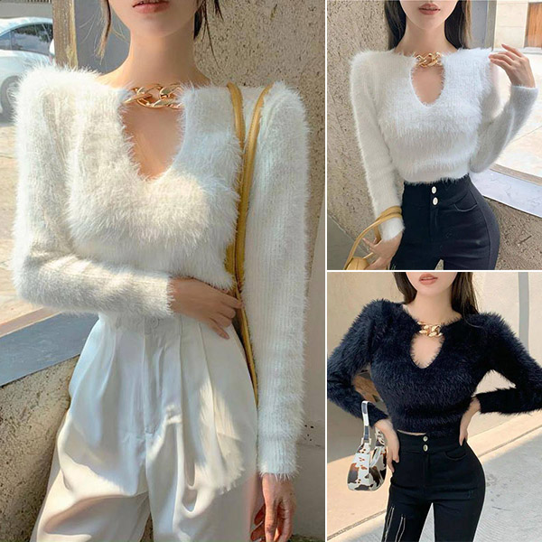 When the days get cold,this stylish and cozy sweater can be your wise choice. Solid color style,the off-shoulder and chain design at the collar part make this piece look more attractive. Crafted from soft and cozy knitted fabric,this piece would be your wardrobe staple in these cold days.