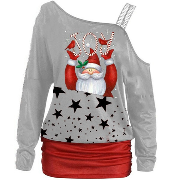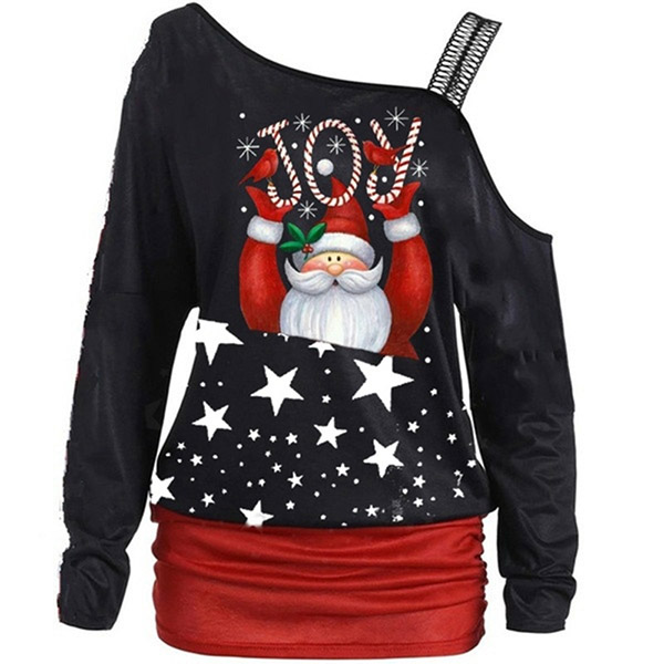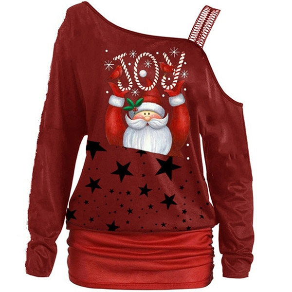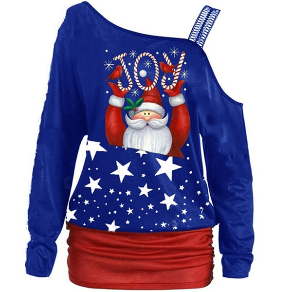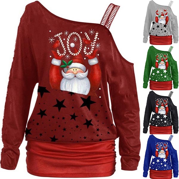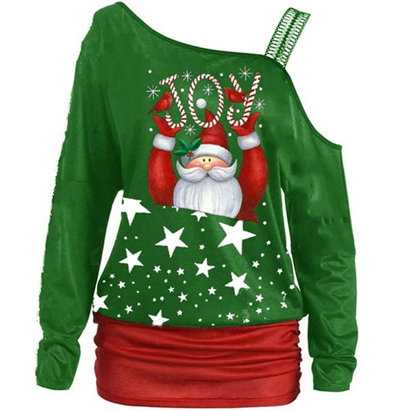 Sexy Off-shoulder Long Sleeve Christmas Printed Sweatshirt