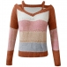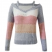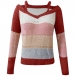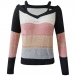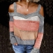 Sexy Off-shoulder Long Sleeve Contrast Color Sling Knit Top