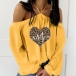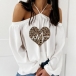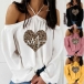Sexy Off-shoulder Long Sleeve Heart Printed Top