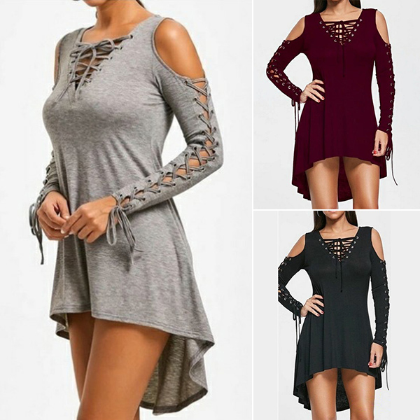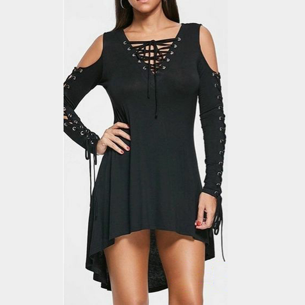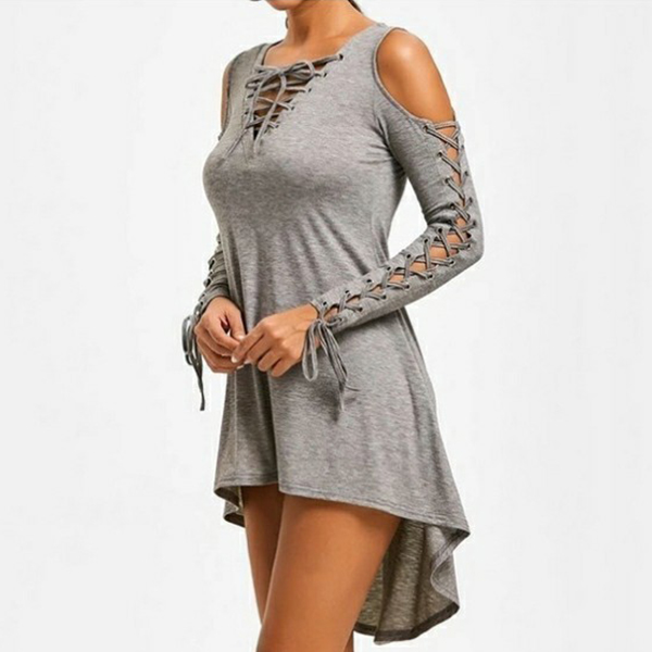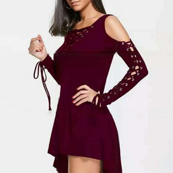 Sexy Off-shoulder Long Sleeve High-low Hem Lace-up Dress