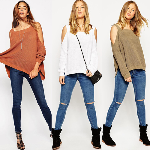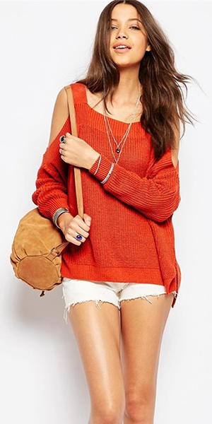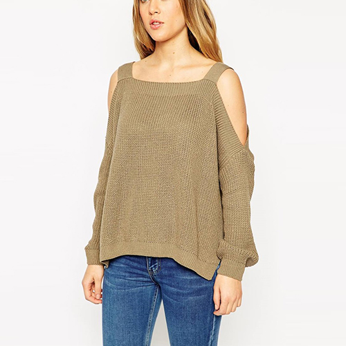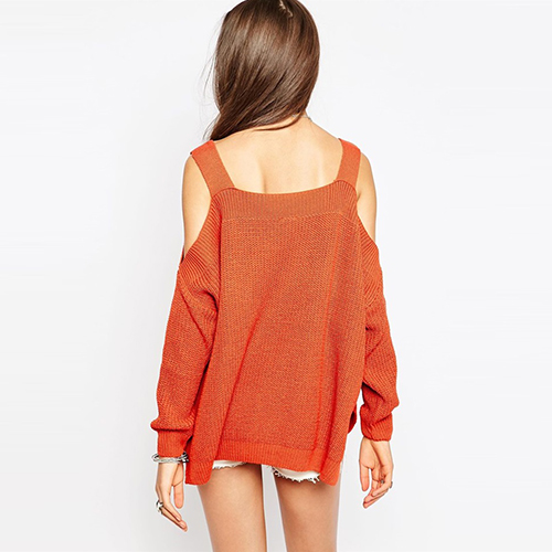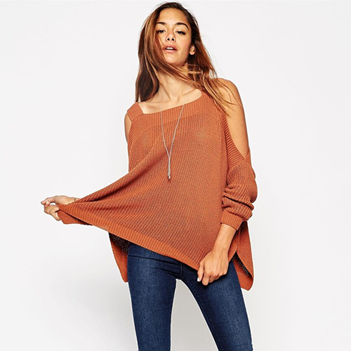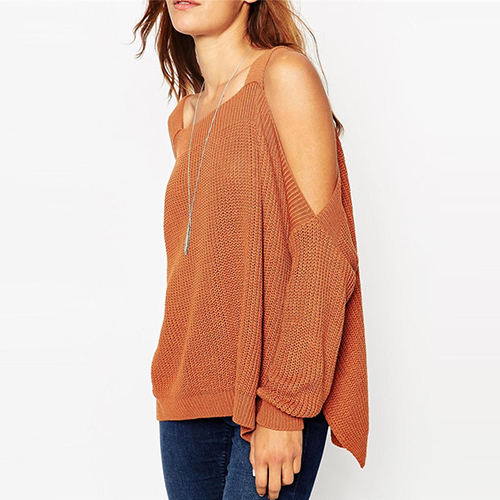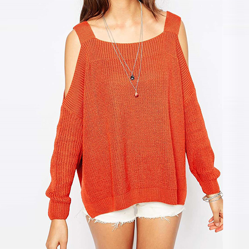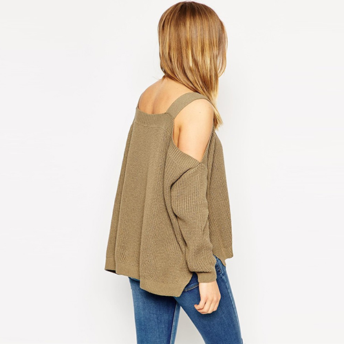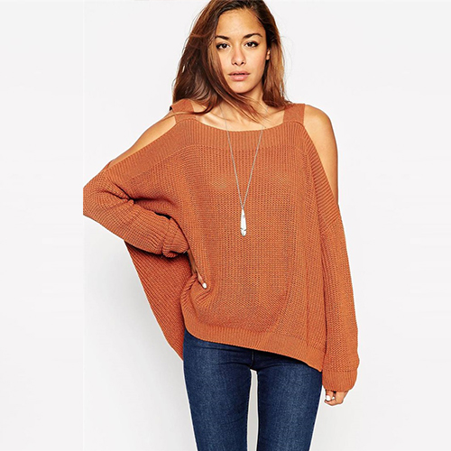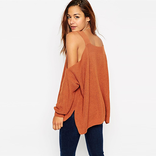 A chilly summer night calls for this sweater. Solid color style,its off-shoulder design makes it