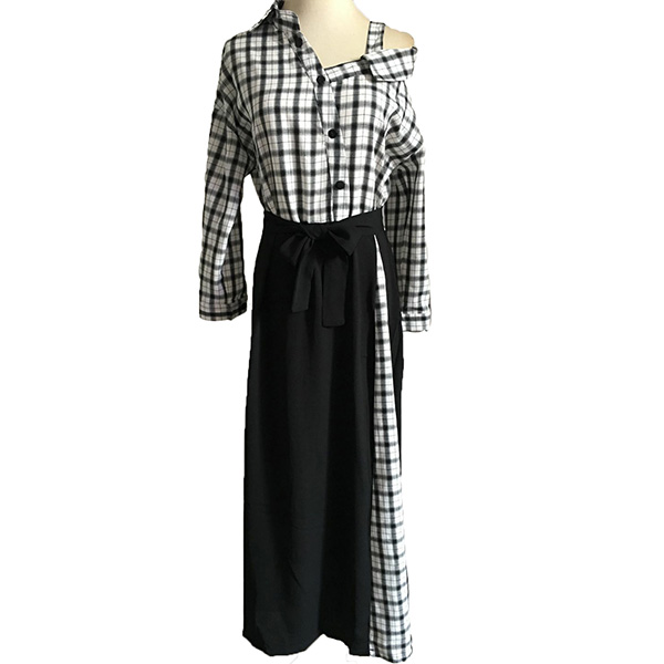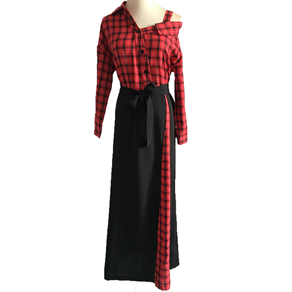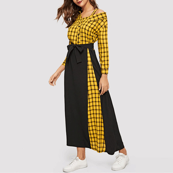 It is a good chance to give your style an instant boost with this dress. Off-shoulder design can lend you a sexy and flirty look,while the plaid spliced details will make this piece more attractive. No matter for your night dating or weekend out,this beautiful dress can be a good choice.