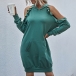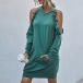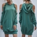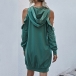 Sexy Off-shoulder Long Sleeve Hooded Ruffle Sweatshirt Dress