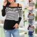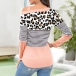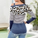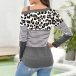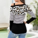Sexy Off-shoulder Long Sleeve Leopard Spliced T-shirt