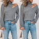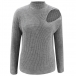 Sexy Off-shoulder Long Sleeve Mock Neck Solid Color Knit Top