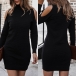 Sexy Off-shoulder Long Sleeve Mock Neck Solid Color Slim Fit Knit Dress