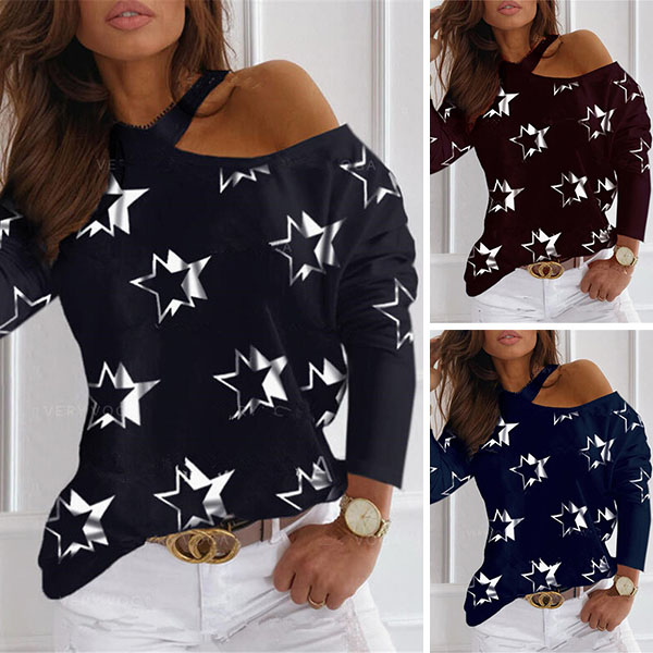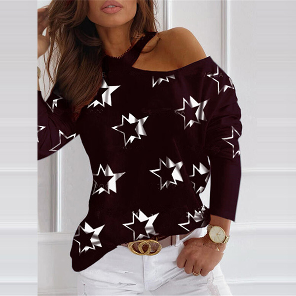 You are sure to win more eyes when you go out with this t-shirt. The unique halter and off-shoulder design can lend you a dash of sexy and flirty vibes. Crafted from soft and breathable fabric,with long sleeve and pentagram printed details,this t-shirt is worth to have a place in your wardrobe.