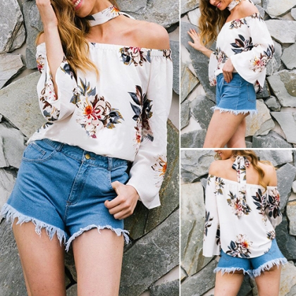 sweet printed pattern,with long sleeve and off-shoulder design,sexy and charming. Match it with your shorts or skirts for an effortless charming look.
