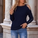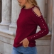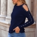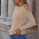 Sexy Off-shoulder Long Sleeve Round Neck Beaded Knit Top