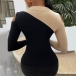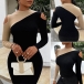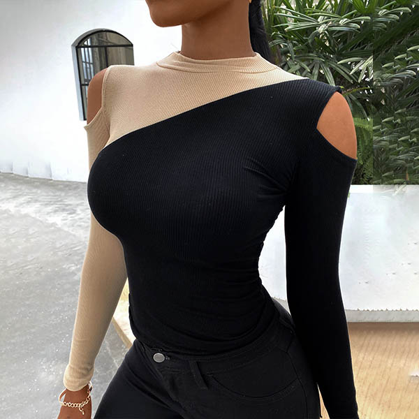 You are sure to win more eyes when you dress yourself up with this dress. Contrast color style,finished with long sleeve,round neck,off-shoulder and a tight silhouette,this piece not only can showcase your seductive curve,but also can exude your sexy and flirty side. Save this piece for your night events!