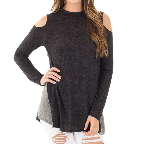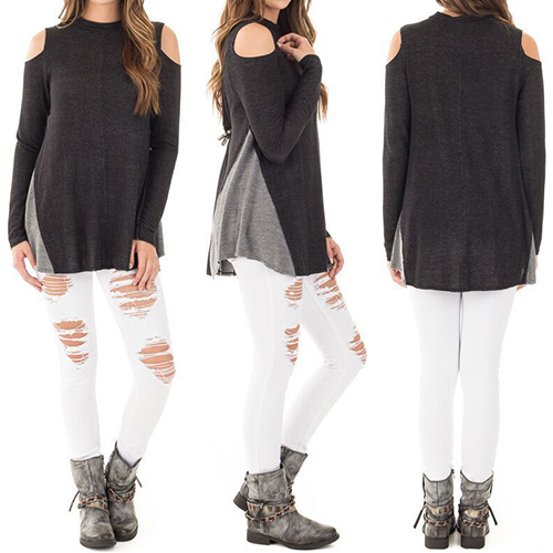 Keep it casual and laid back with this long sleeved top. Contrast color style,its off-shoulder design adds
