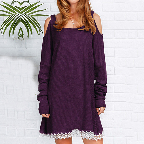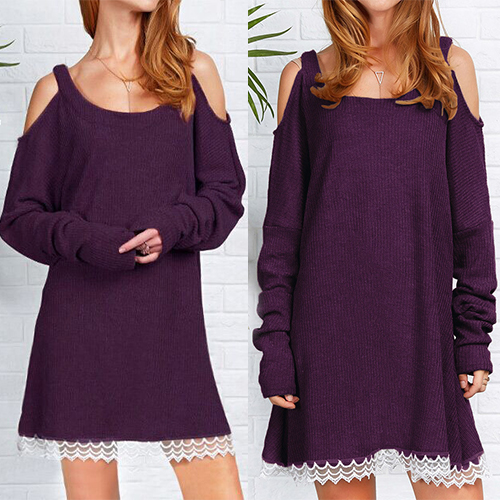 This long sleeved dress with off-shoulder and lace spliced details make you look more sexy and