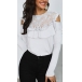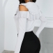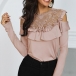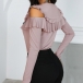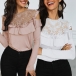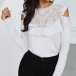 Sexy Off-shoulder Long Sleeve Round Neck Lace Spliced Ruffle T-shirt