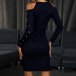Sexy Off-shoulder Long Sleeve Round Neck Slim Fit Dress