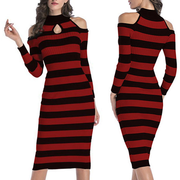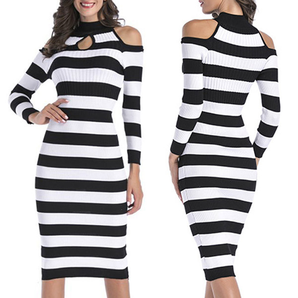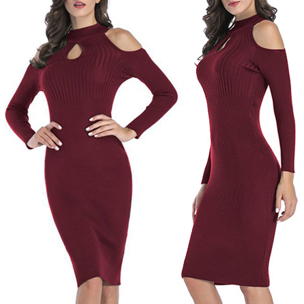 Sexy Off-shoulder Long Sleeve Round Neck Slim Fit Knit Dress