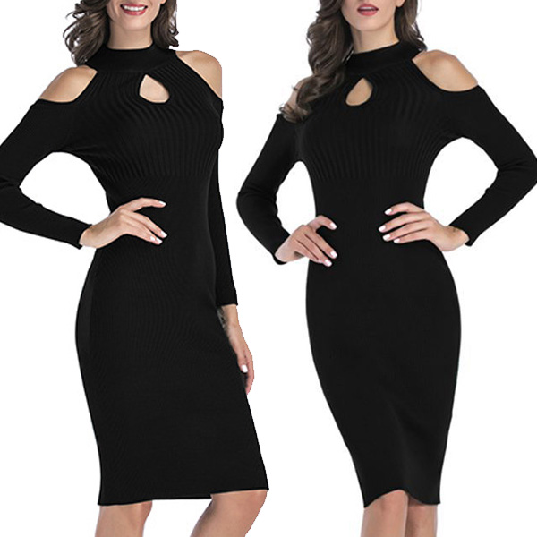 In these spring and autumn days,this knit dress would be your new darling. The off-shoulder design can lend you a dash of sexy and flirty vibes,while its fit silhouette design can demonstrate your slender figure. You can also match with your overcoats in these chilly winter for a charming winter style.