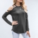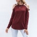Sexy Off-shoulder Long Sleeve Round Neck Sling T-shirt