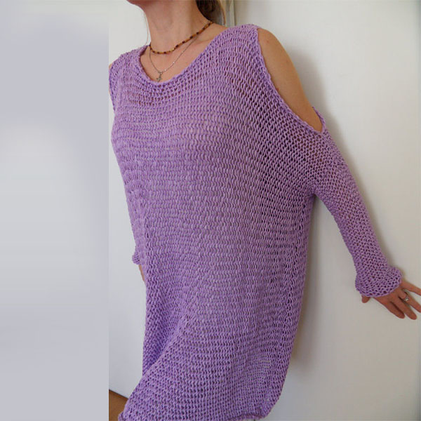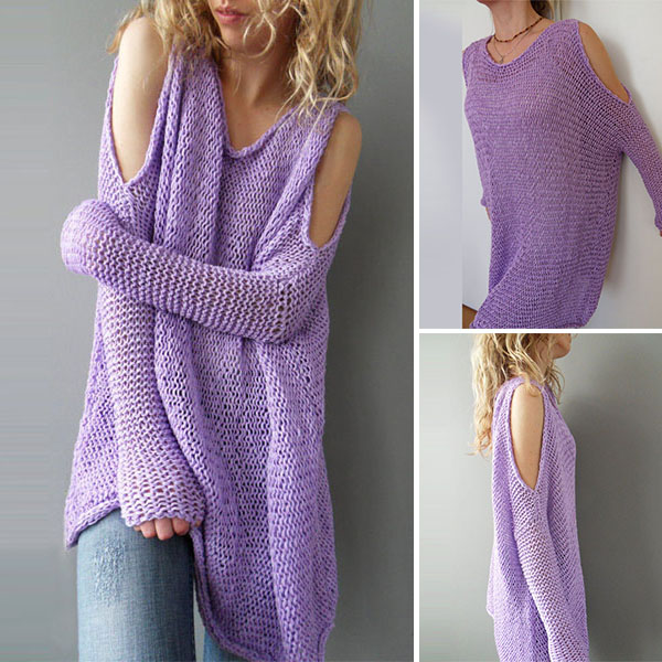 round neck and a loose silhouette,this sweater can keep you comfy all day,while the off-shoulder design adds a dash