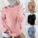 Sexy Off-shoulder Long Sleeve Round Neck Solid Color Sweater