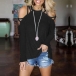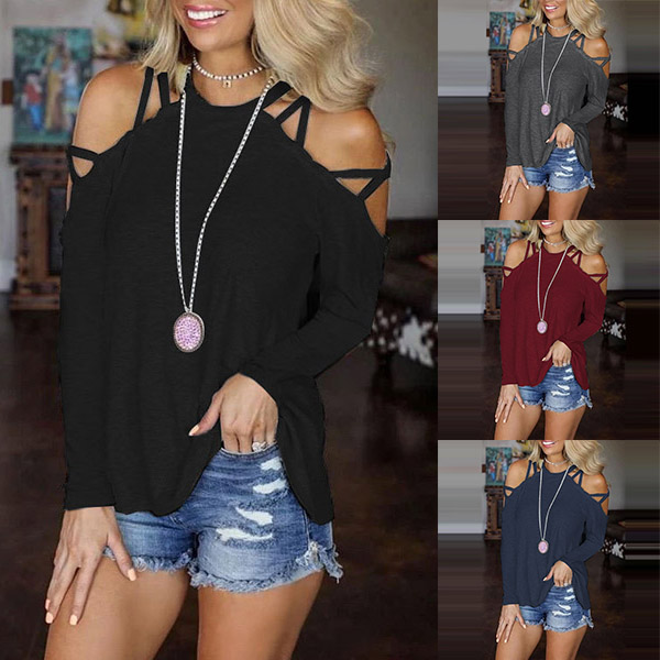 Not only can keep the comfy,but also can enhance your feminine appeal,that's why we suggest you this t-shirt. It boasts a solid color,the off-shoulder design can lend you a sexier look. You can add a sparkle necklace to gain more charming look.