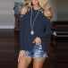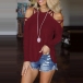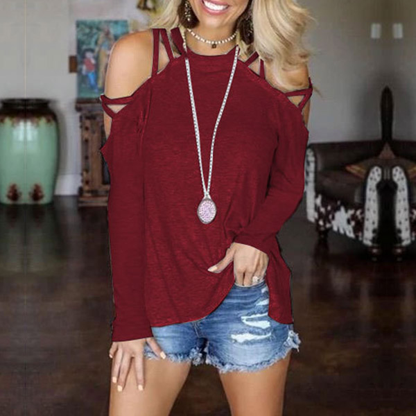 Sexy Off-shoulder Long Sleeve Round Neck Solid Color T-shirt