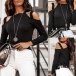 Sexy Off-shoulder Long Sleeve Round Neck Solid Color T-shirt