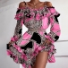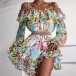 Sexy Off-shoulder Long Sleeve Ruffle Sling Printed Dress