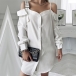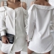 Sexy Off-shoulder Long Sleeve Single-breasted Solid Color Sling Shirt Dress