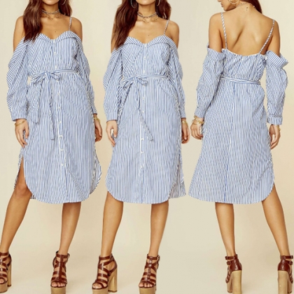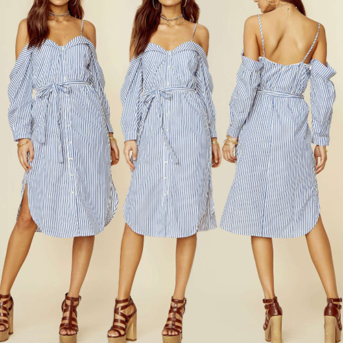 Wanna add a different style piece to your wardrobe ensemble? Then you can consider this shirt dress. Striped style,