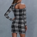 Sexy Off-shoulder Long Sleeve Slim Fit Plaid Dress