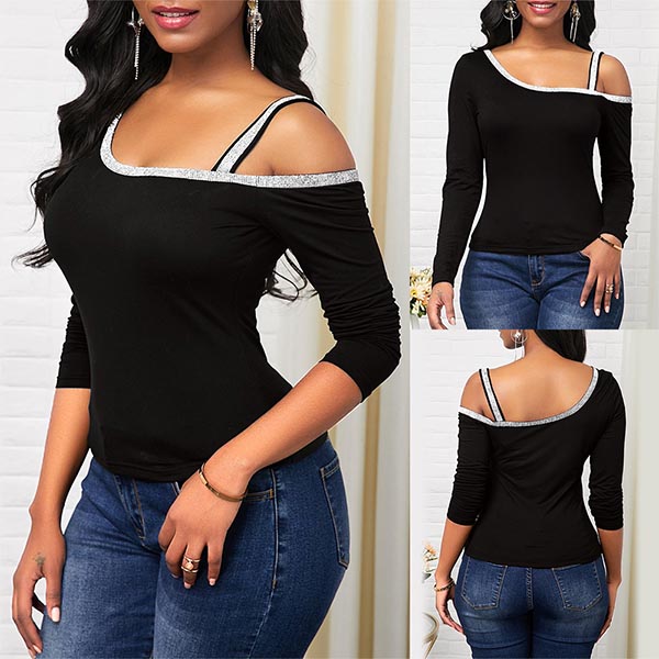 When it comes to a cozy yet sexy style,you can have a try this t-shirt. It comes with a classic yet flattering black tone,the off-shoulder design can lend you a dash of flirty vibes. You can match with any kind of bottoms you like with this t-shirt to start your wonderful day!
