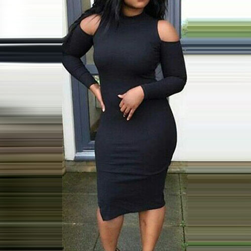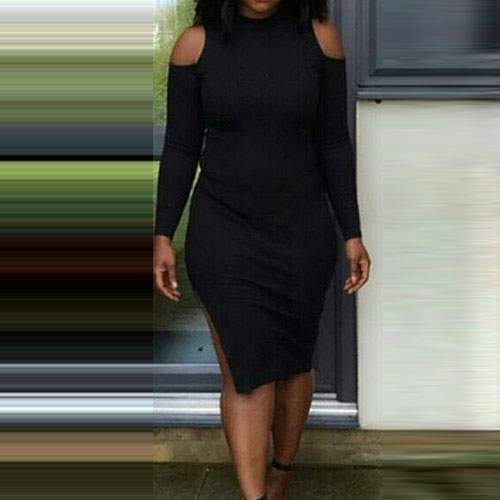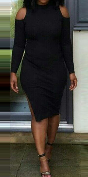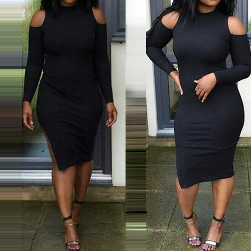 and flattering black color,and its off-shoulder,slit hem and body-flattering silhouette makes it look