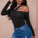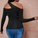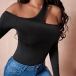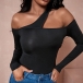 Sexy Off-shoulder Long Sleeve Solid Color Irregular T-shirt