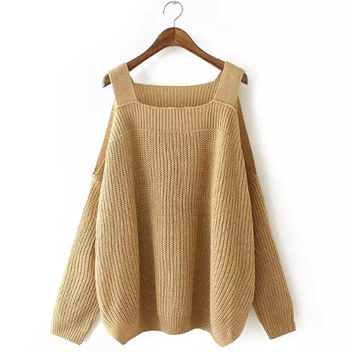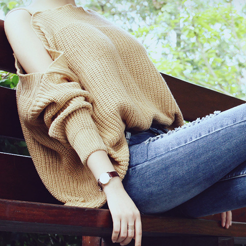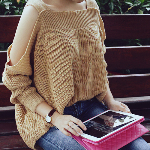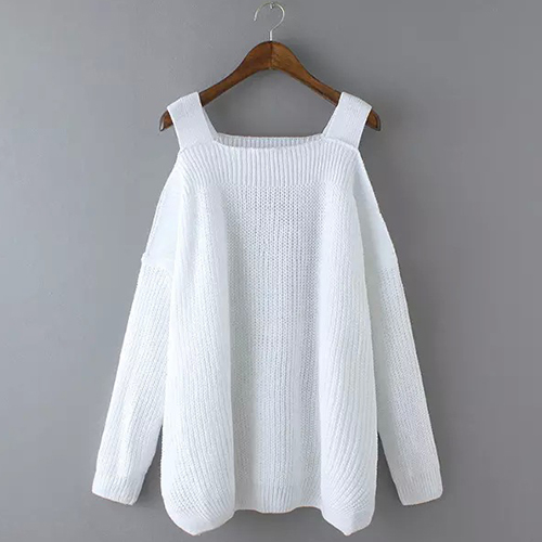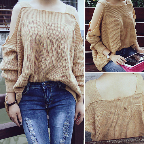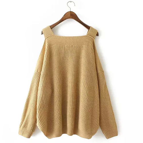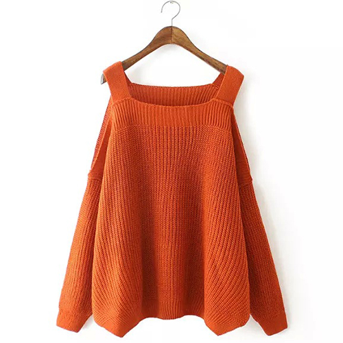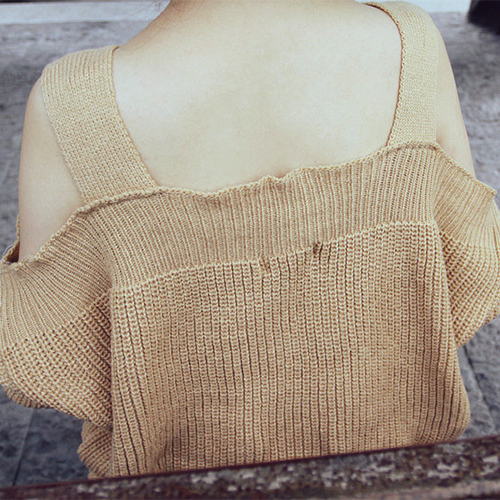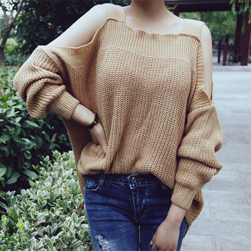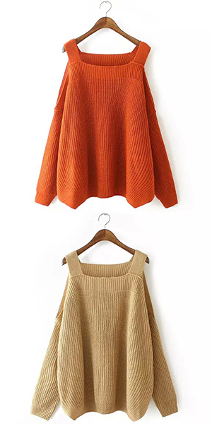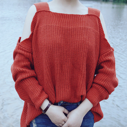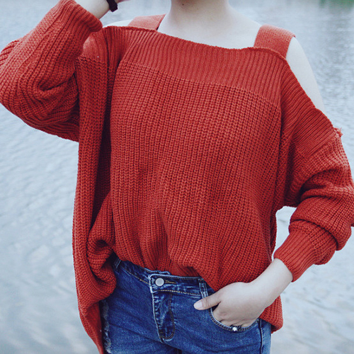 Sexy Off-shoulder Long Sleeve Solid Color Knit Sweater
